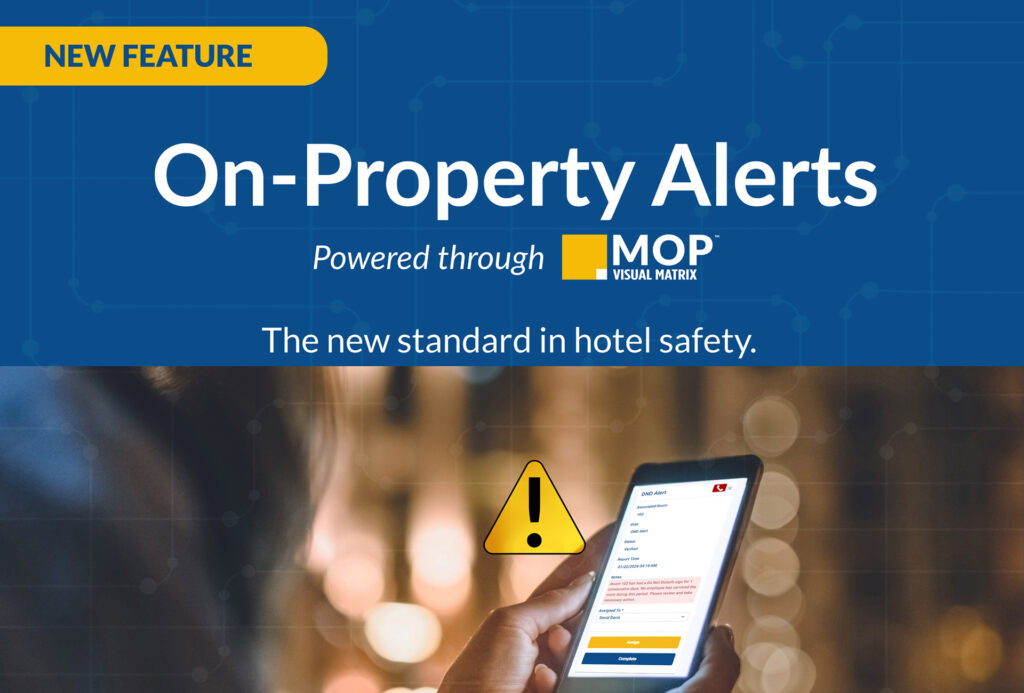 Delivered through the MOP mobile app, Our new suite of on-site alerts equips hotel teams with discreet, easy-to-use safety device tools to identify risk, respond safely, report concerns, and escalate appropriately-without confrontation or disruption.